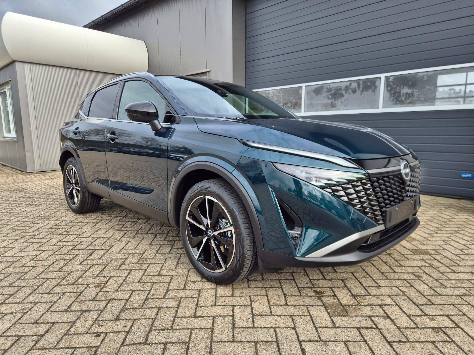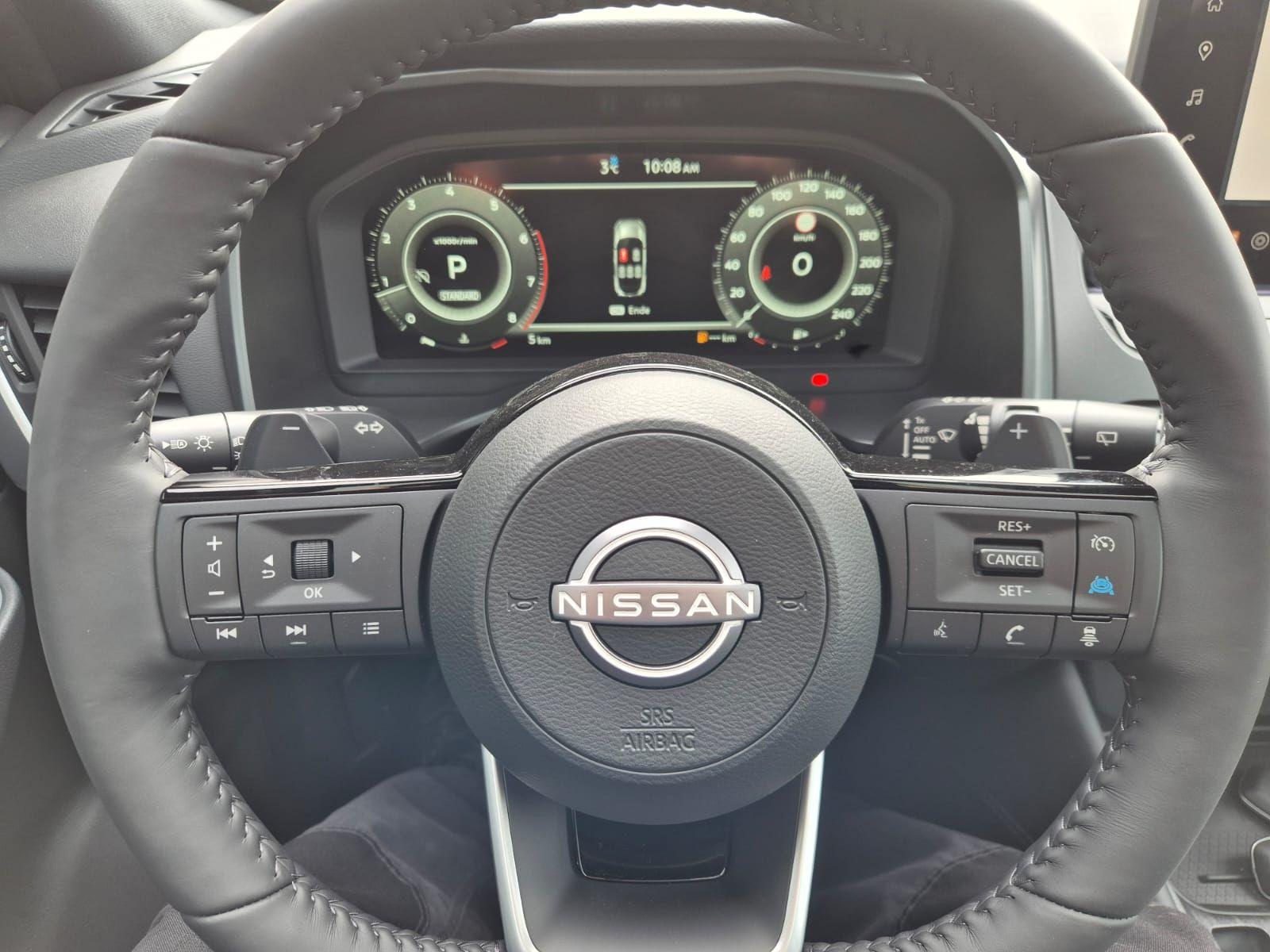 Nissan Qashqai 1.3 DIG-T MHEV 158 PS X-Tronic Tekna Voll-Leder Klimaautomatik PanoGlasdach Sitzheizung Lenkradheizung Navi Head-Up Display elektr. Heckklappe ACC PDC v+h 360°Kamera DAB Bluetooth Touchscreen Apple CarPlay Android Auto 19"LM